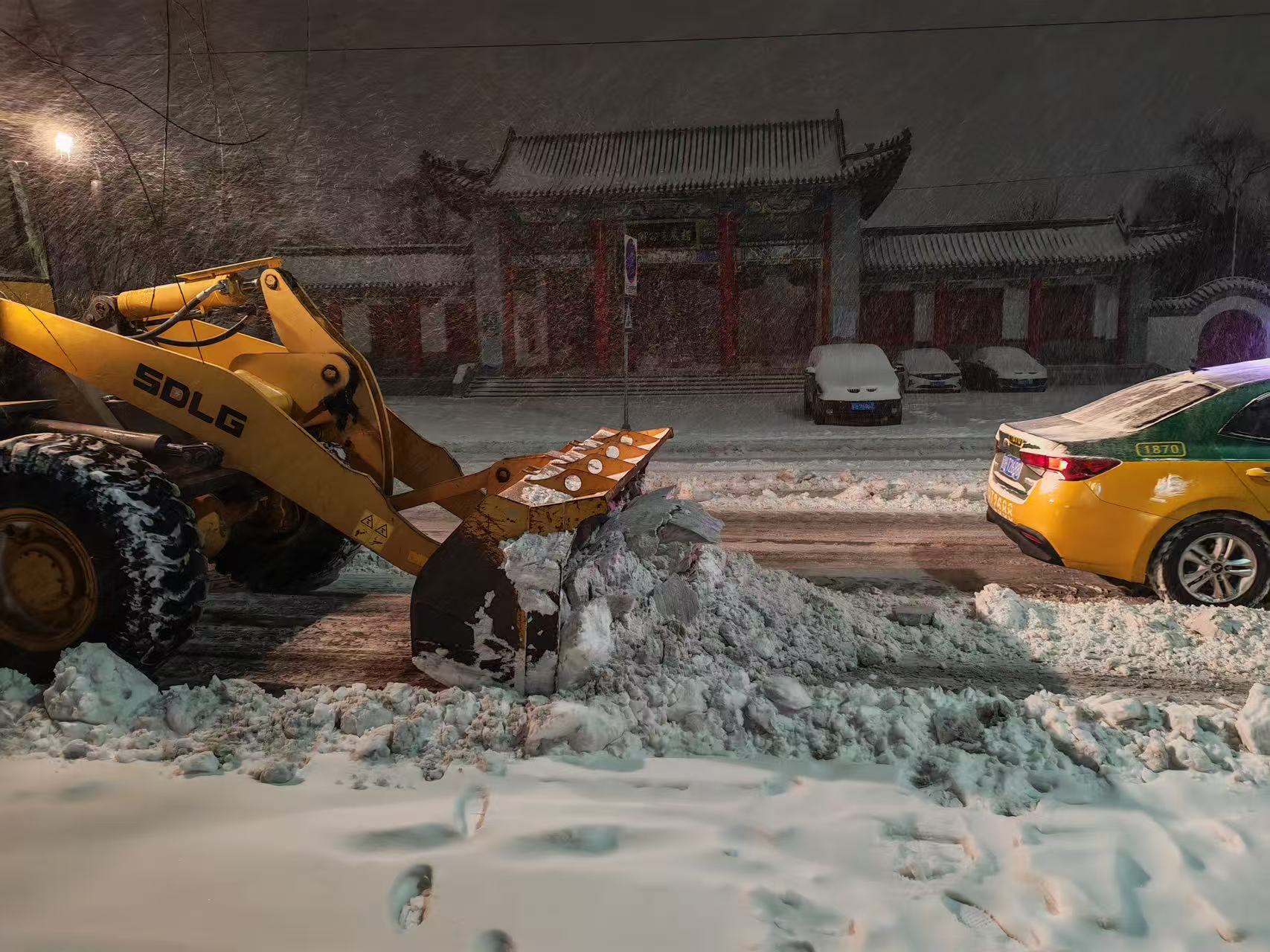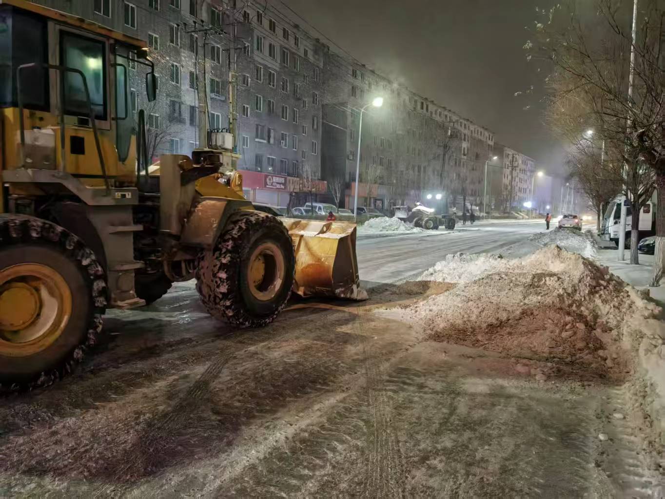 雪情就是命令,保障即是責任。集團組建80余人的應(yīng)急清雪隊伍,調(diào)配推雪鏟車8臺,裝雪鏟車2臺,運雪車8臺,做好全流程準備。凌晨3點,天色未亮、寒風(fēng)料峭,清雪隊伍已全員集結(jié)、整裝出發(fā)。機械鏟車開道破冰,人工隊伍跟進清掃,人機協(xié)同高效作業(yè),從新興大街東新路口到西環(huán)路口全力清除積雪,為市民出行掃清障礙。