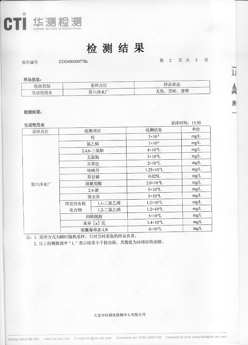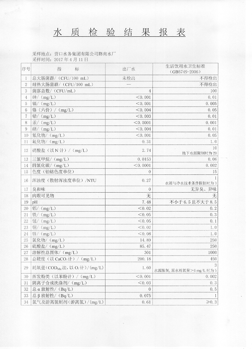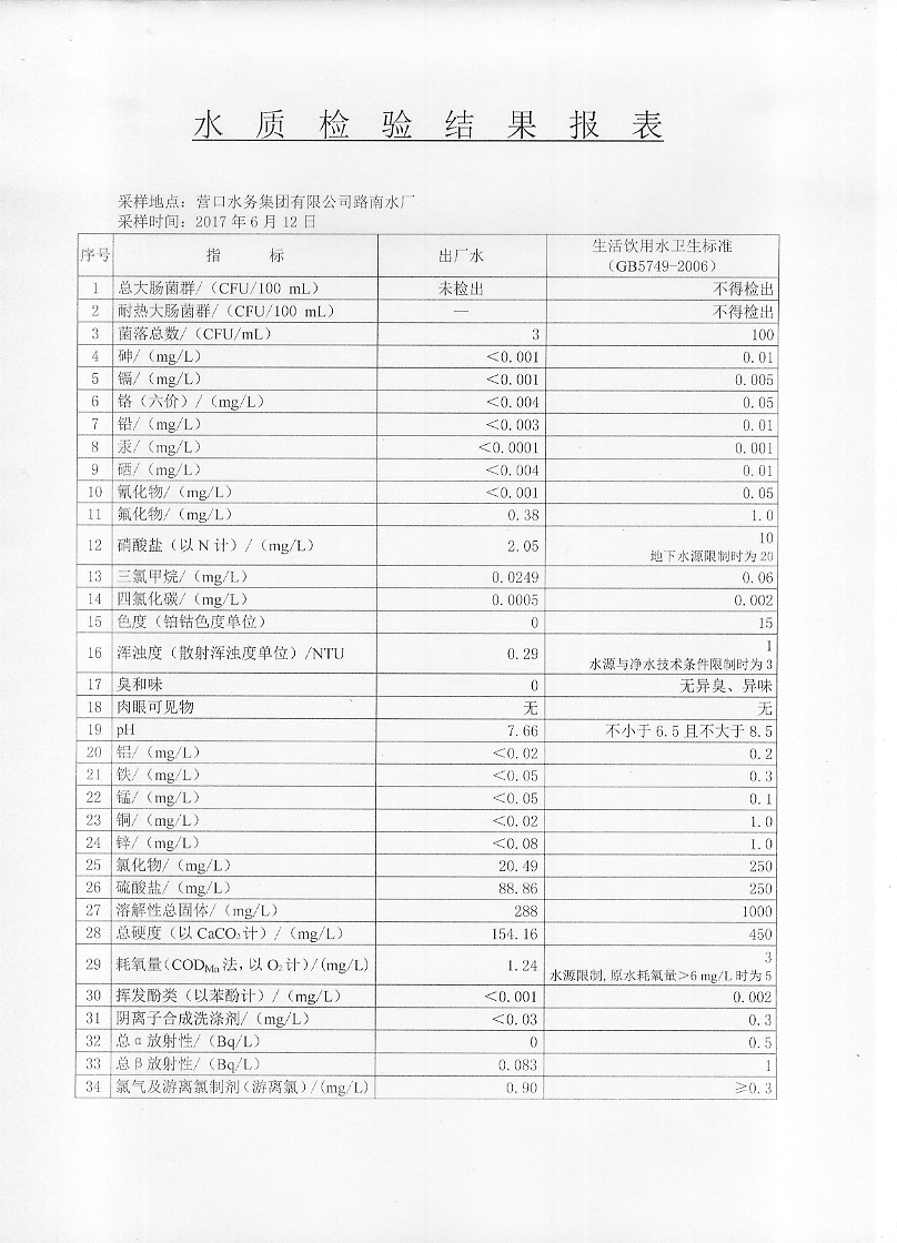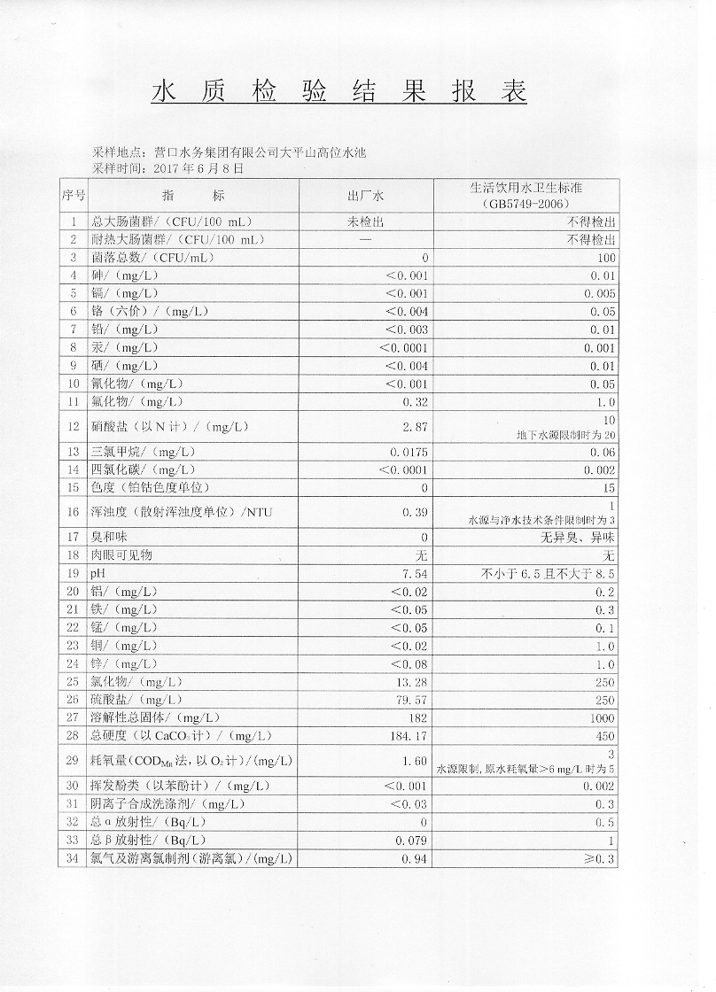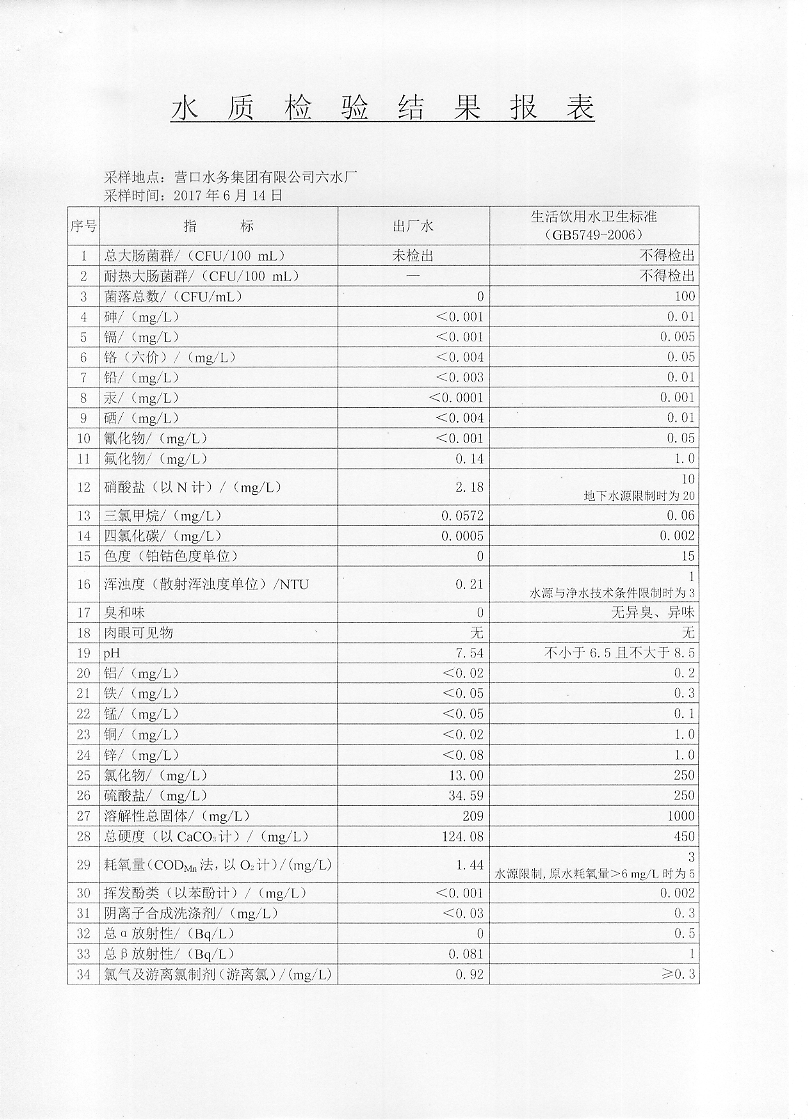 2017年二季度水質檢驗報告